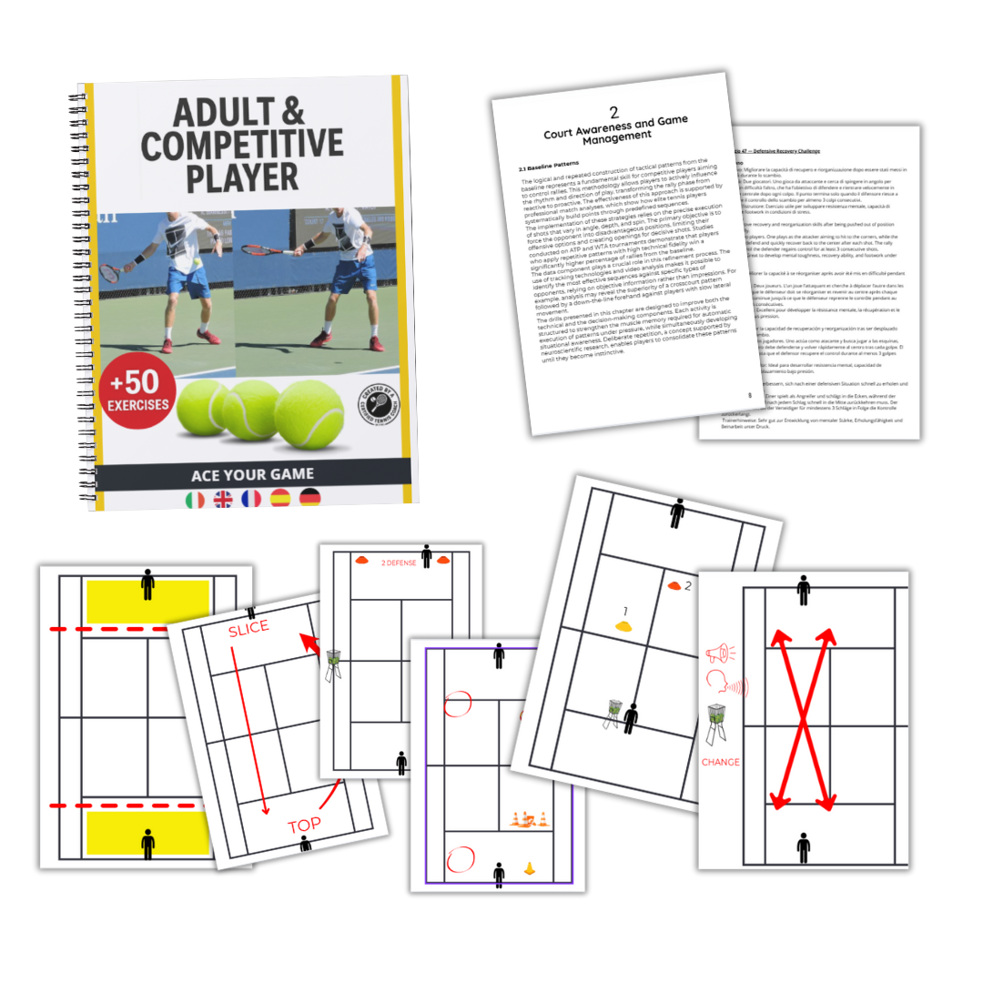 ✔️ Advanced technical exercises (topspin, slice, serve, returns, net transitions)